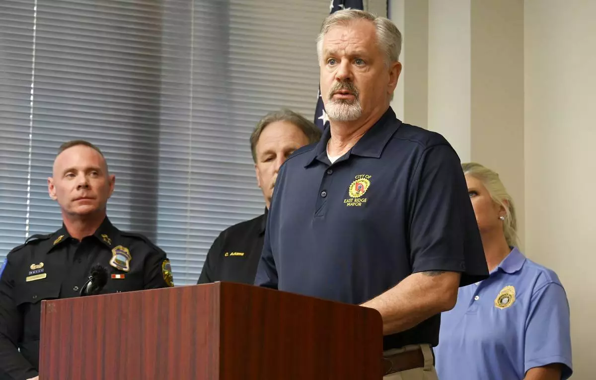 East Ridge Mayor Brian Williams speaks during a news conference Wednesday, Aug. 13, 2025, in Chattanooga, Tenn. in response to the recent severe flash flooding in the area. (Abby White/Chattanooga Times Free Press via AP)