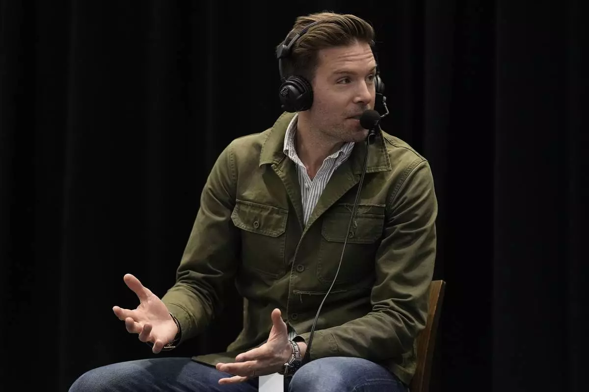 FILE - Minnesota Twins executive vice president Joe Pohlad speaks to fans and media during the baseball team's annual fan fest at Target Field, Saturday, Jan. 28, 2023, in Minneapolis. (AP Photo/Abbie Parr, File)