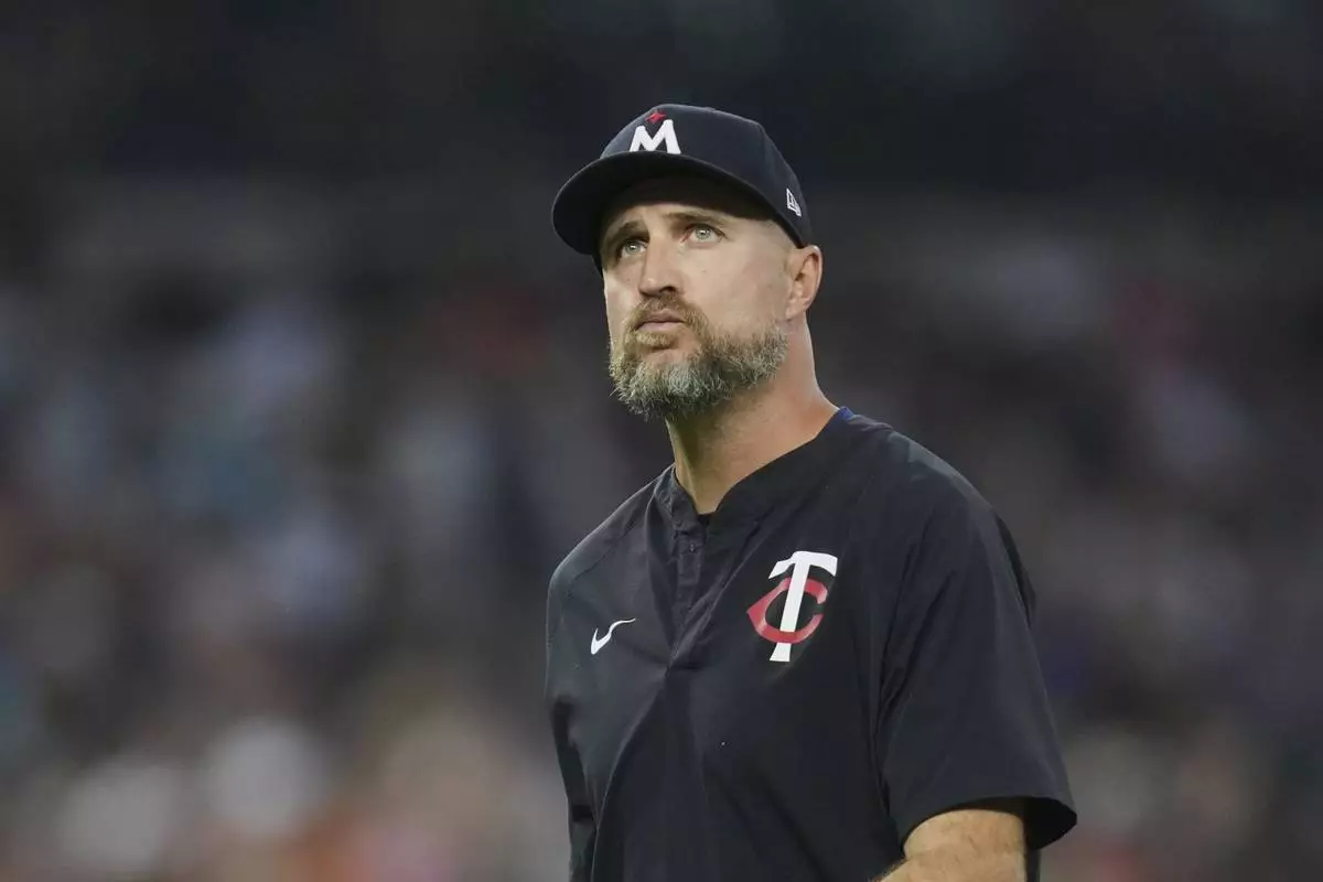 Minnesota Twins manager Rocco Baldelli watches against the Detroit Tigers in the seventh inning during a baseball game Tuesday, Aug. 5, 2025, in Detroit. (AP Photo/Paul Sancya)