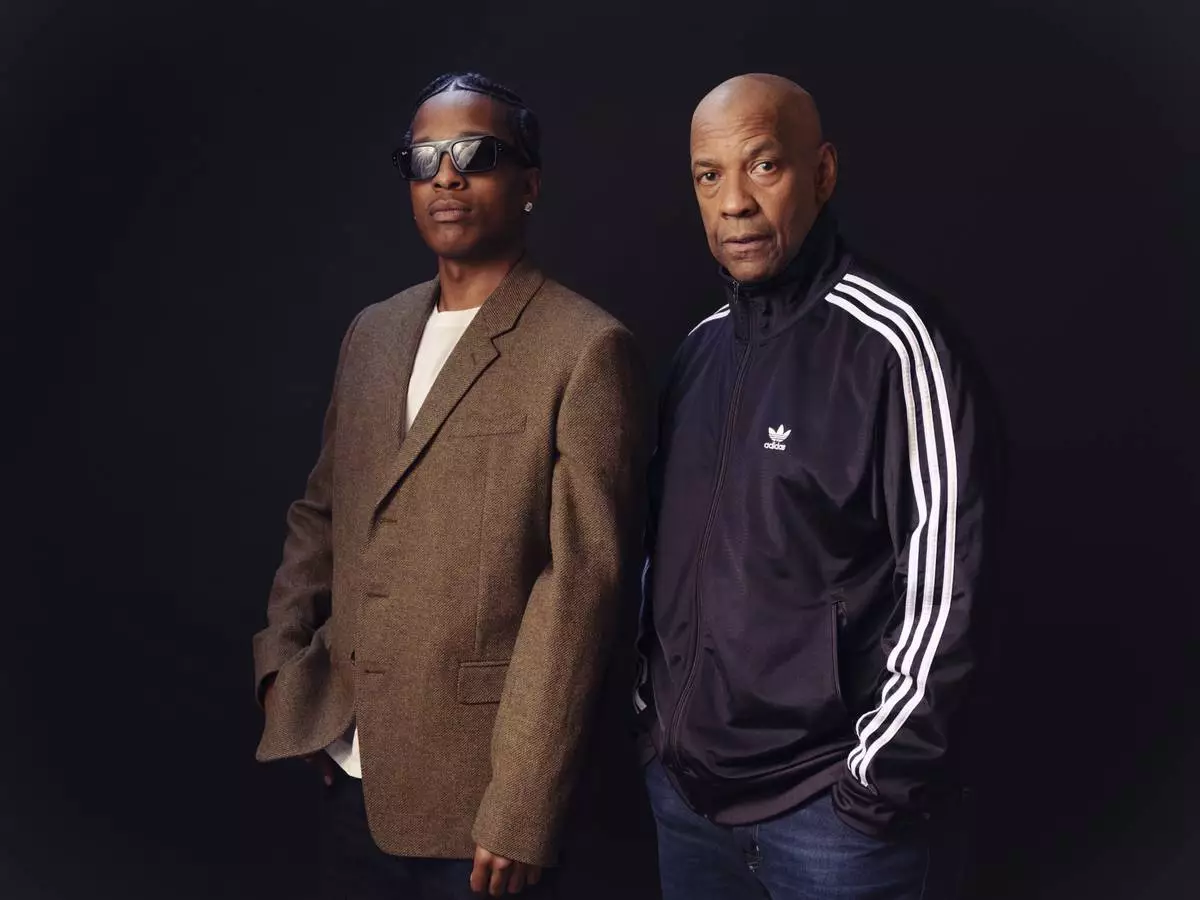 A$AP Rocky, left, and Denzel Washington pose for a portrait to promote "Highest 2 Lowest" on Sunday, Aug. 10, 2025, in New York. (Photo by Drew Gurian/Invision/AP)