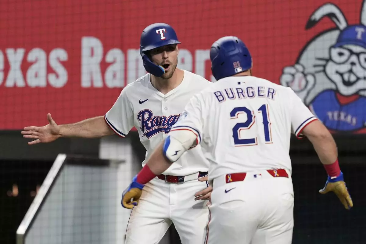 Evan Carter had two hits in his return for Texas after missing 10 games (back spasms). He had an RBI single in the first and doubled ahead of Jake Burger’s 12th homer in the fourth that made it 3-1.