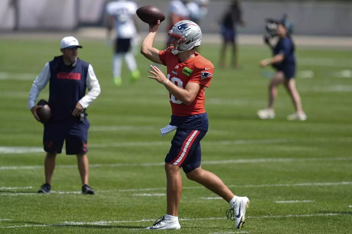 Maye had plenty of pressure in full-team drills that likely would've resulted in sacks during games, but with no tackling allowed he was able to let several deep passes rip down the field that hit their intended targets. Former Vikings wide receiver Diggs caught one of them at the sideline with Pro Bowl cornerback Byron Murphy Jr. in coverage. Another one of the highlights went to rookie running back TreVeyon Henderson on a well-designed wheel route that offensive coordinator Josh McDaniels might well like to dial up again this season.