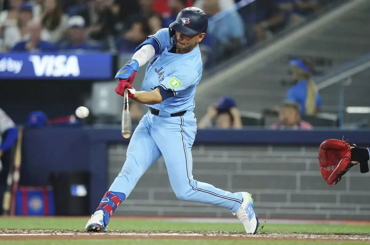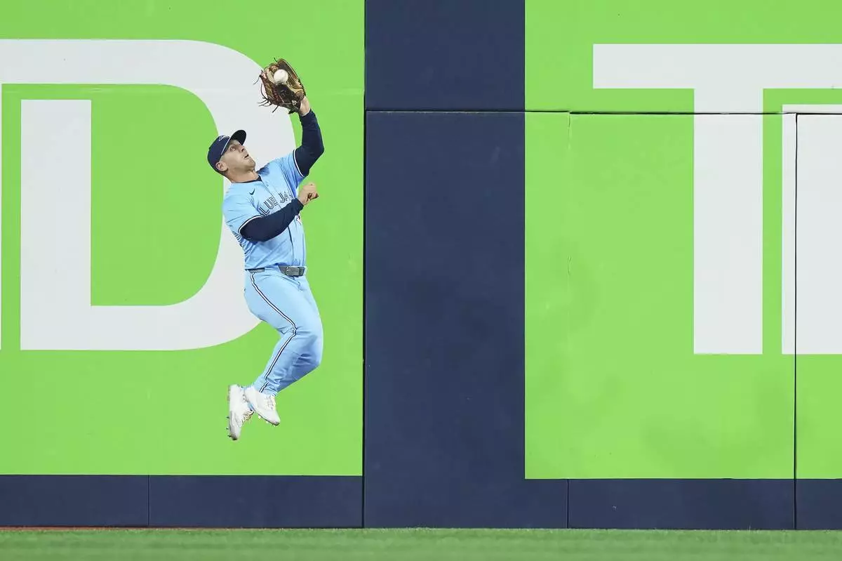 Andrew Kittredge came on to face Vladimir Guerrero Jr., who hit an RBI double. Addison Barger flied out to the warning track to end the inning.