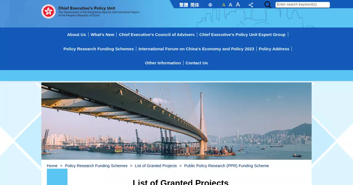 The Chief Executive's Policy Unit (CEPU) announced today (August 14) the results of the theme-based exercise specially launched for education-related policies under the Public Policy Research Funding Scheme (PPRFS) 2025-26.