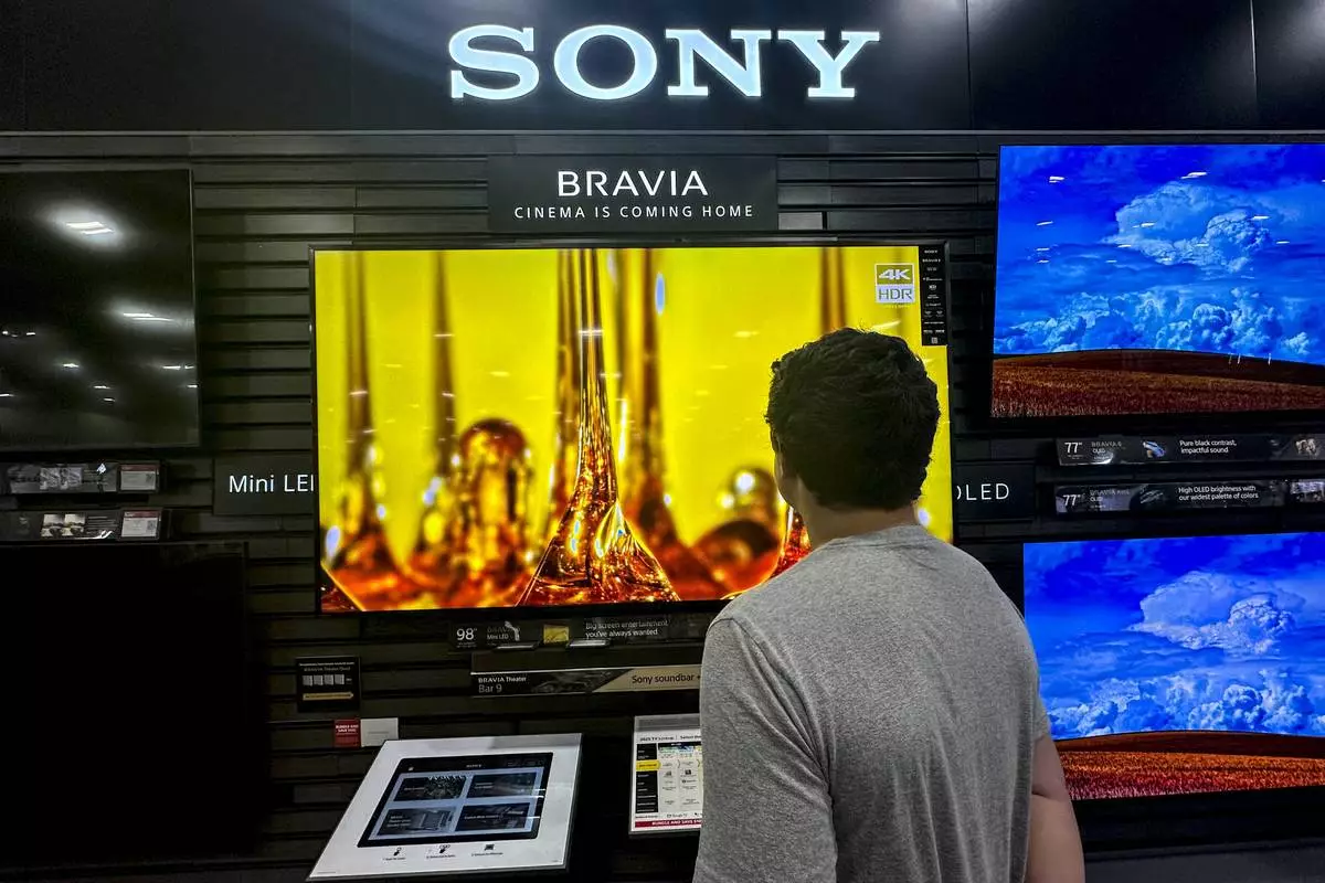 A man views a new television at a store in Kennesaw, Ga., on Thursday, Aug. 14, 2025. (AP Photo/Mike Stewart)