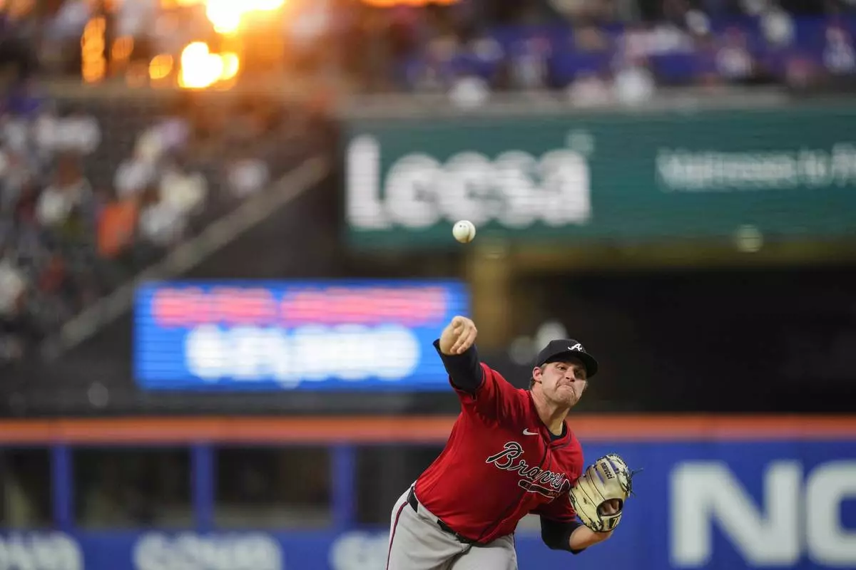 Atlanta Braves pitcher Bryce Elder throws during the second inning of a baseball game against the New York Mets, Thursday, Aug. 14, 2025, in New York. (AP Photo/Yuki Iwamura)