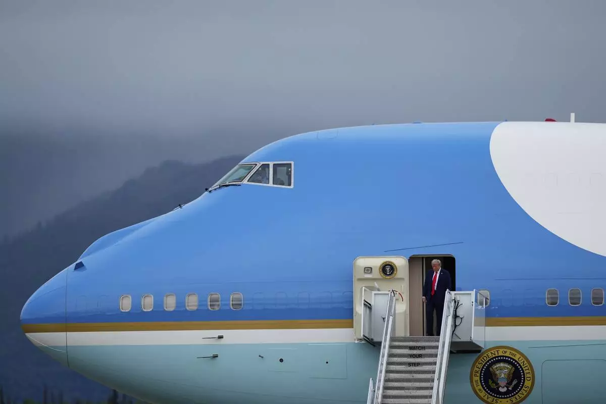 President Donald Trump arrives on Air Force One, Friday, Aug. 15, 2025, at Joint Base Elmendorf-Richardson, Alaska, to meet with Russia's President Vladimir Putin. (AP Photo/Julia Demaree Nikhinson)