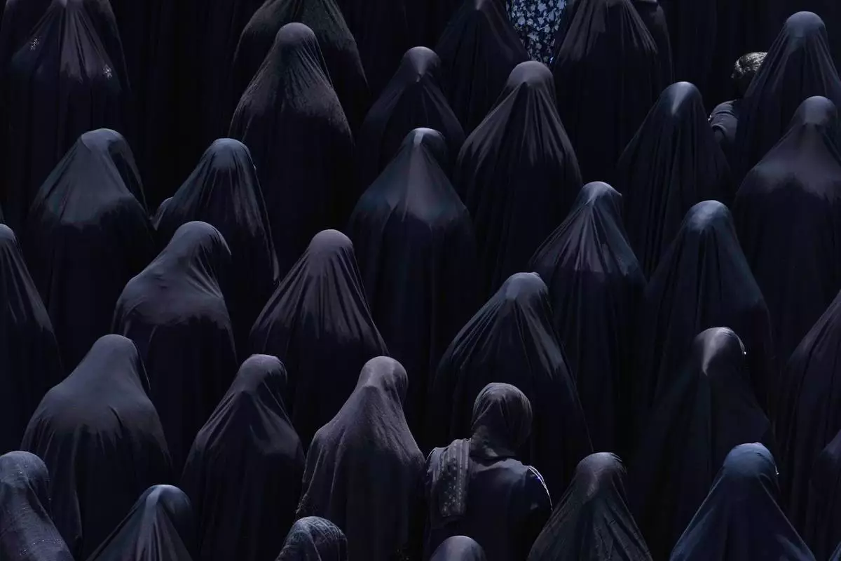 Shiite Muslim women pray at the shrine of Saint Abdulazim in Shahr-e-Ray, south of Tehran, Iran, Thursday, Aug. 14, 2025, during a ceremony to observe the Arbaeen, which marks the anniversary of the 40th day of mourning following the 7th century death of the Prophet Muhammad's grandson Hussein, who was killed in a battle in Karbala in present-day Iraq. (AP Photo/Vahid Salemi)