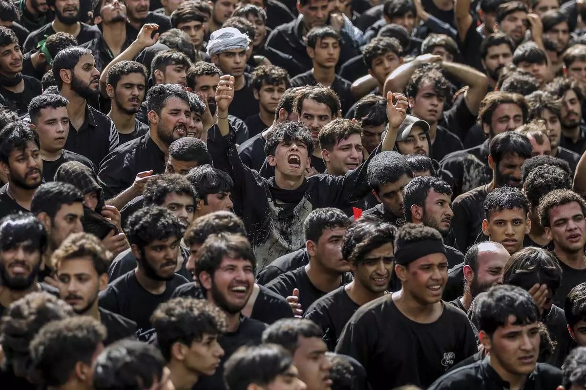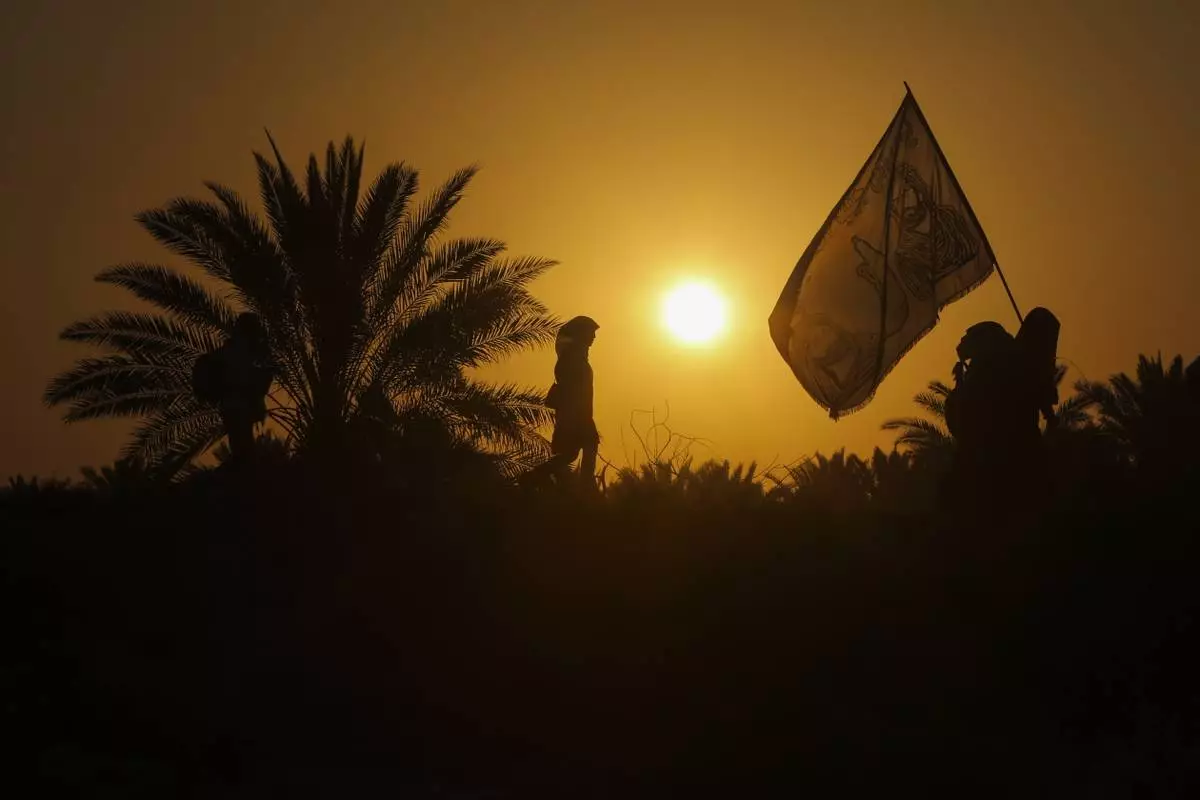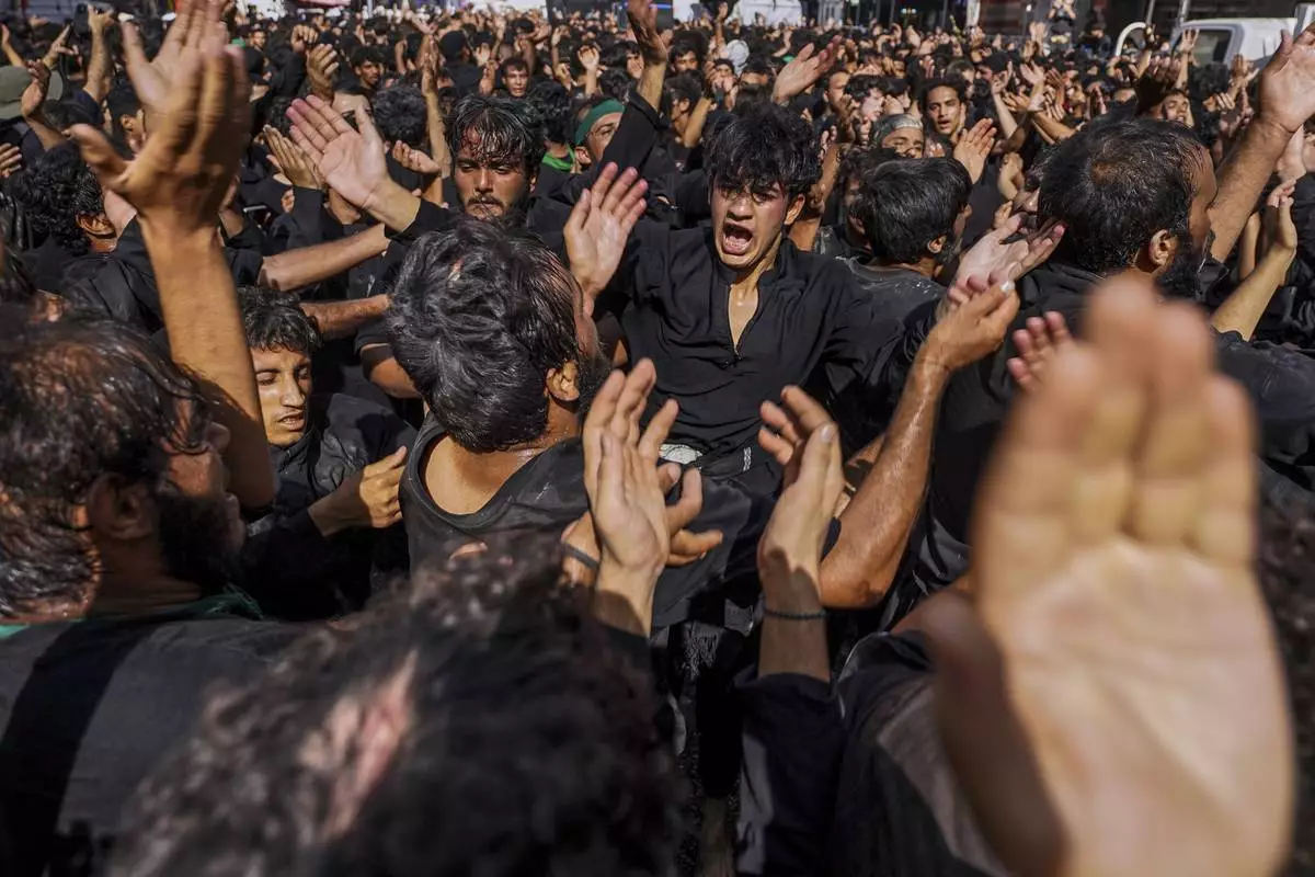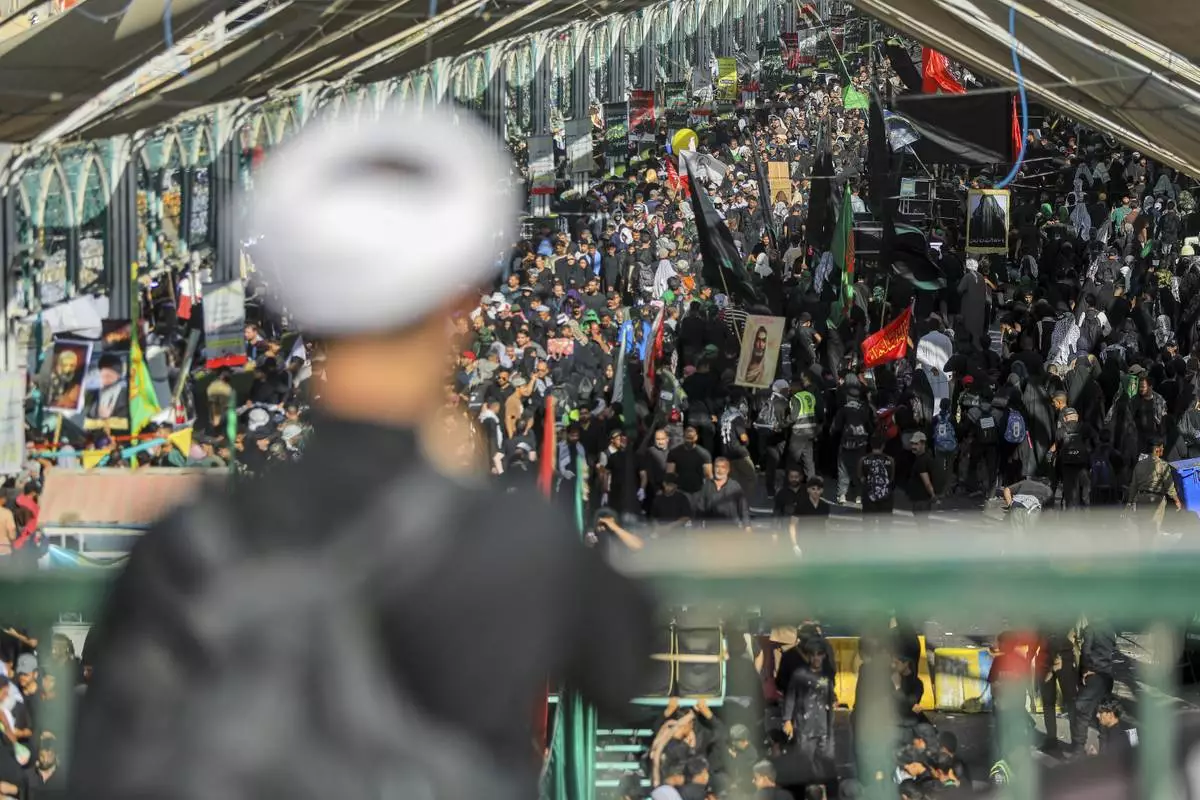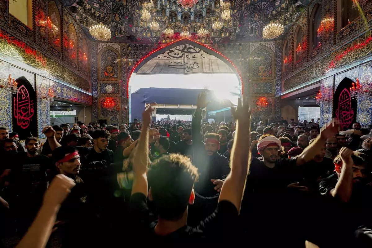 Shiite pilgrims participate in Arbaeen, which marks the end of the 40-day mourning period following Ashoura, in Karbala, Iraq, Thursday, Aug. 14, 2025. (AP Photo/Ammar Khalil)