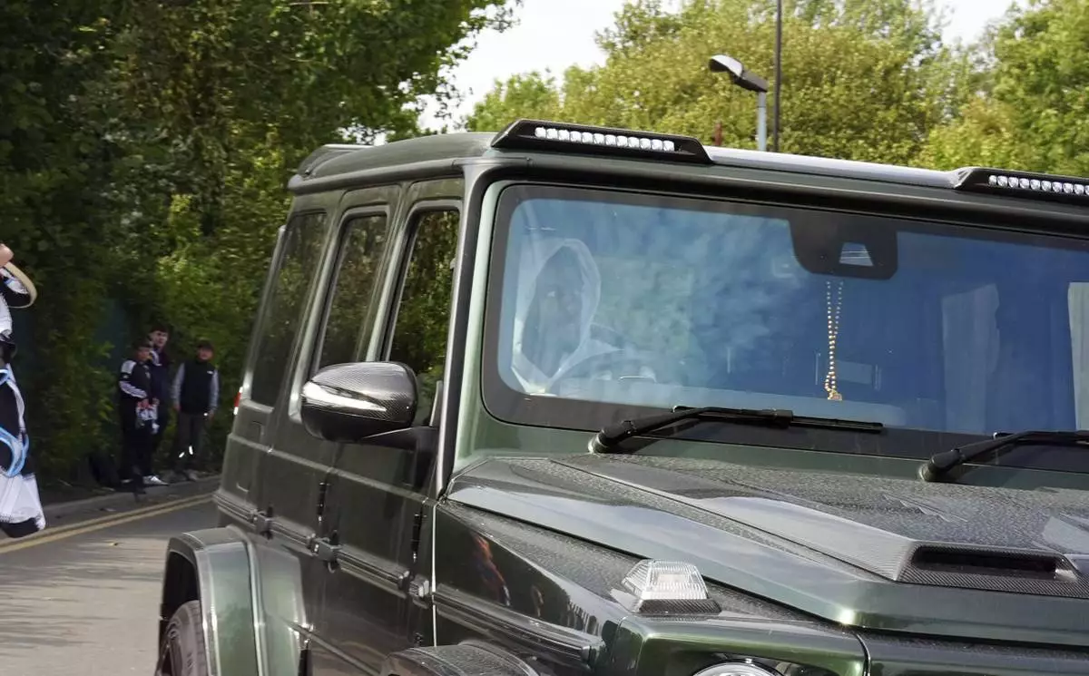 Newcastle United's Alexander Isak arrives for training at the Newcastle United Training Centre, Newcastle upon Tyne, England, Wednesday, Aug. 5, 2025. (Owen Humphreys/PA via AP)