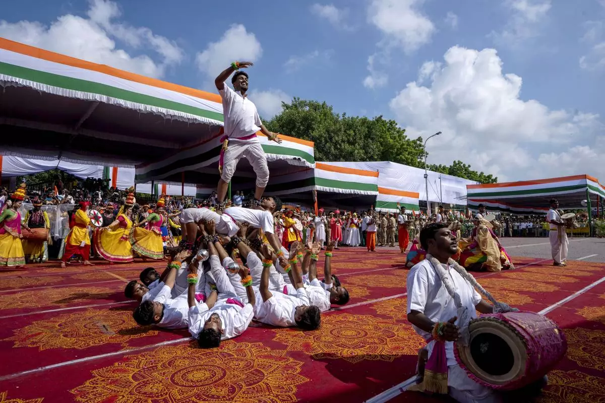 Artists perform during Independence Day celebrations in Lucknow, Uttar Pradesh state, India, Friday, Aug. 15, 2025. (AP Photo/Rajesh Kumar Singh)