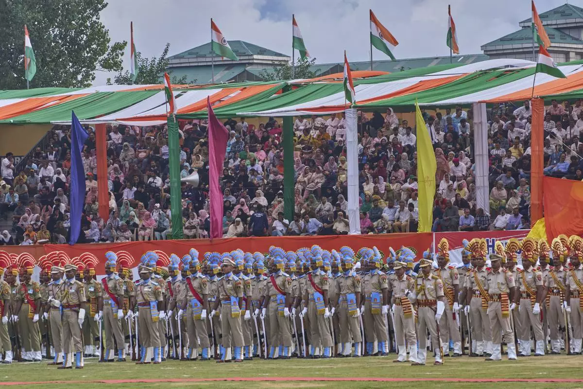 People watch an Independence Day parade in Srinagar, Indian controlled Kashmir, Friday, Aug. 15, 2025. (AP Photo/Dar Yasin)
