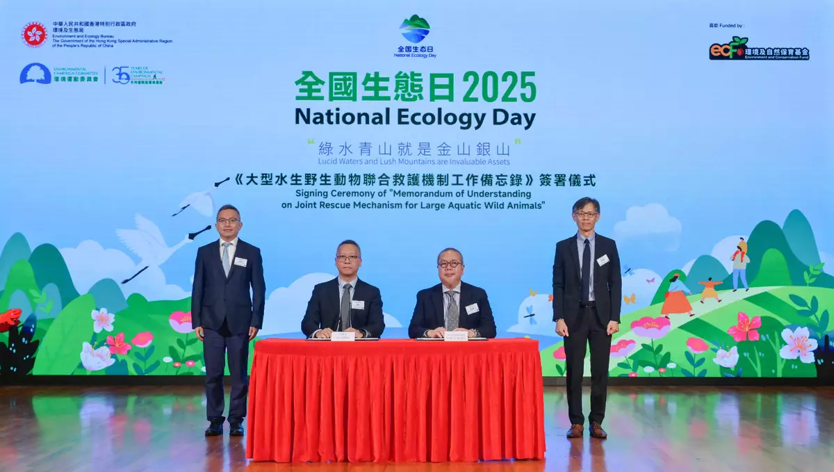 At the launching ceremony, the Agriculture, Fisheries and Conservation Department (AFCD) signed a Memorandum of Understanding on the Joint Rescue Mechanism for Large Aquatic Wild Animals with the Ocean Development Bureau of Shenzhen Municipality to deepen the rescue co-operation of large aquatic wild animals between the two places, and to strengthen the exchange of experience and technology to improve the ecological safety of the adjacent waters of Hong Kong and Shenzhen.