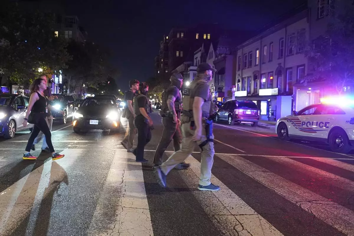 Friday night along the district's U Street, a popular nightlife corridor, an Associated Press photographer saw officers from the FBI, the DEA, the Department of Homeland Security, U.S. Park Police, U.S. Marshals and the Bureau of Alcohol, Tobacco, Firearms and Explosives.
