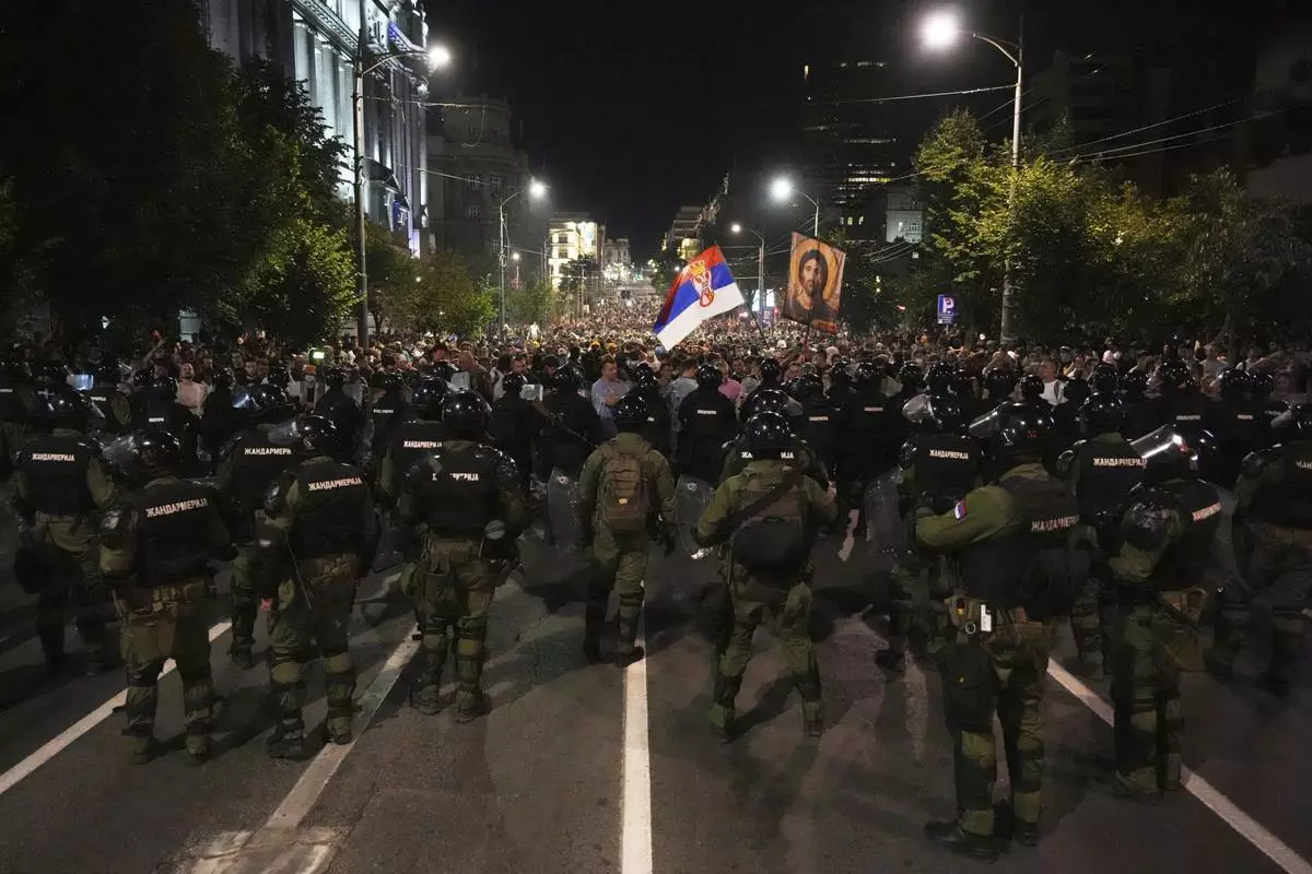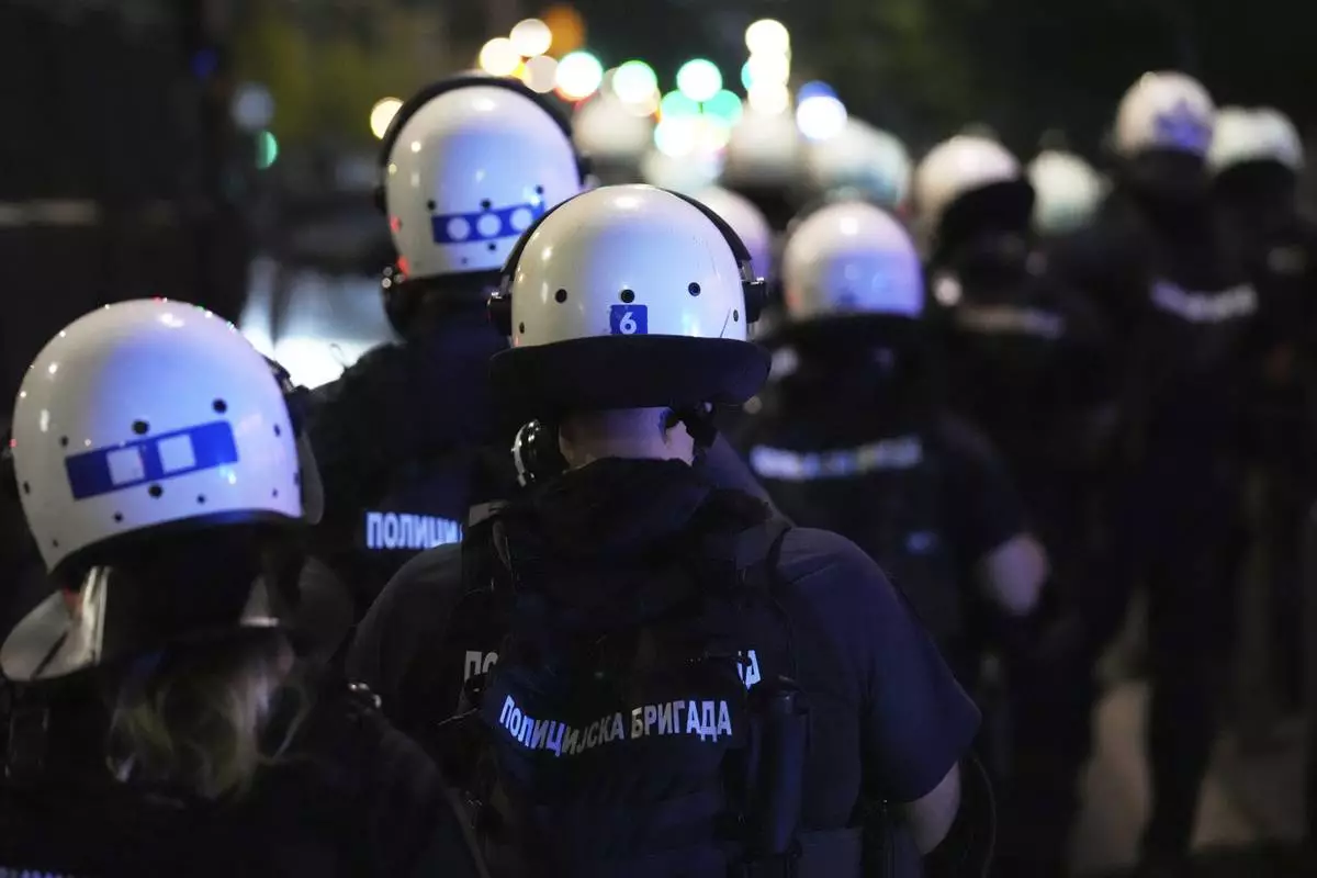 The anti-government rallies were held on Friday night across Serbia under the slogan: “Let’s show them we are not a punching bag." Police deployed armored vehicles in parts of the capital as protesters faced off against riot police separating them from pro-government supporters in downtown Belgrade.