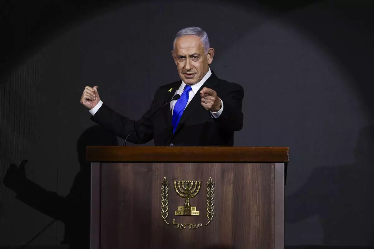 FILE - Israel's Prime Minister Benjamin Netanyahu delivers a speech during the International Conference on Combating Antisemitism in Jerusalem, Israel, March 27, 2025. (AP Photo/Leo Correa, File)