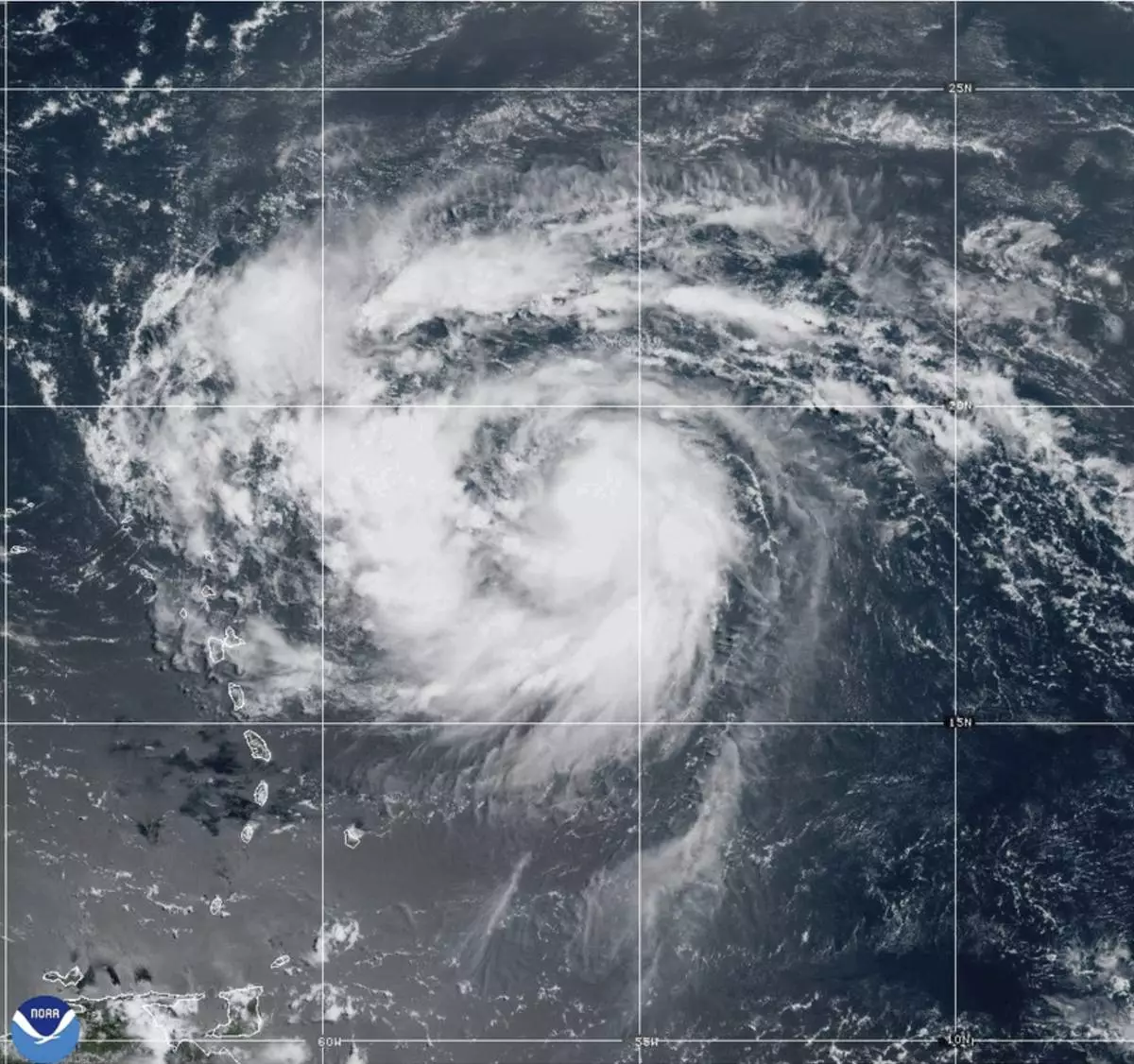 The storm’s center was about 145 miles (230 kilometers) north-northeast of San Juan, Puerto Rico, and it was heading toward the west-northwest at 14 mph (22 kph). It was not forecast to make a direct hit on land.