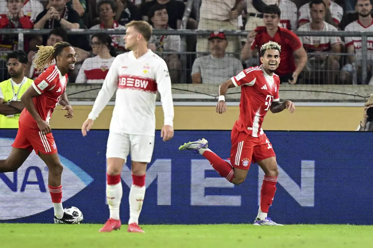 BERLIN (AP) — Luis Díaz scored and won a title on his Bayern Munich debut after a 2-1 win over Stuttgart in the German Supercup on Saturday.