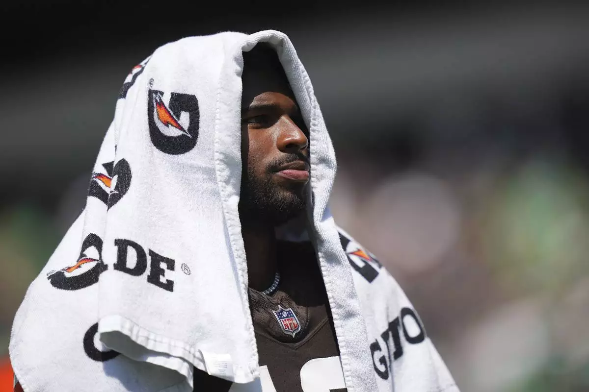 Sanders, who covered his head with a towel as he watched from the sideline, didn't play after he sustained an oblique injury during drills ahead of practice Wednesday. The Browns said he is day to day.