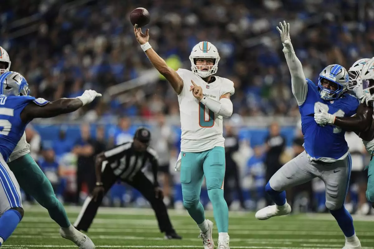DETROIT (AP) — Backup quarterback Zach Wilson had a strong first half for the Dolphins and third-stringer Quinn Ewers threw for two second-half touchdowns as Miami beat the Detroit Lions 24-17 in the preseason on Saturday.