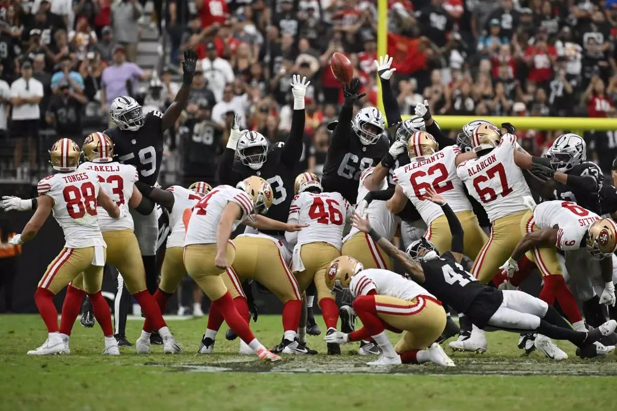 Jake Moody made a 59-yard field goal as time expired for the 49ers (1-1). He also converted a 44-yarder with 37 seconds remaining to tie the game, and then Jaylen Mahoney intercepted Raiders quarterback Cam Miller to set up the winner.