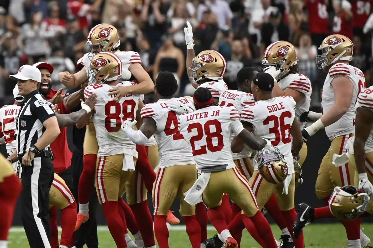 LAS VEGAS (AP) — The San Francisco 49ers might have celebrated Saturday's 22-19 preseason win over the Las Vegas Raiders as if it were a playoff game, rushing Jake Moody after his 59-yard field goal sailed through the uprights as time expired, but they head back to the Bay Area lamenting a few more injuries.