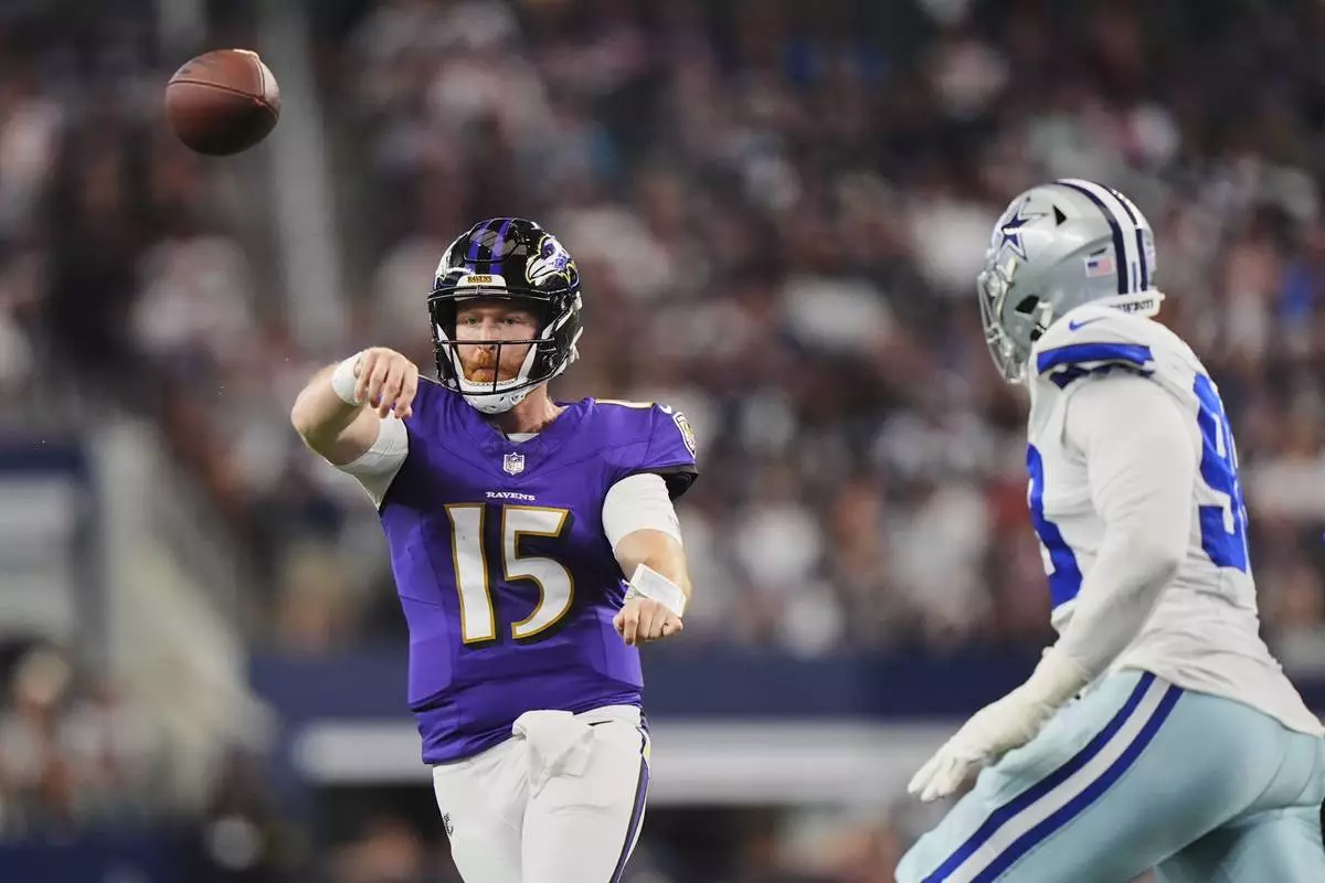 ARLINGTON, Texas (AP) — Cooper Rush threw a touchdown pass and a pick-6 in his return to AT&T Stadium, and rookie Tyler Loop kicked five field goals as the Baltimore Ravens beat the Dallas Cowboys 31-13 in a preseason game on Saturday night.