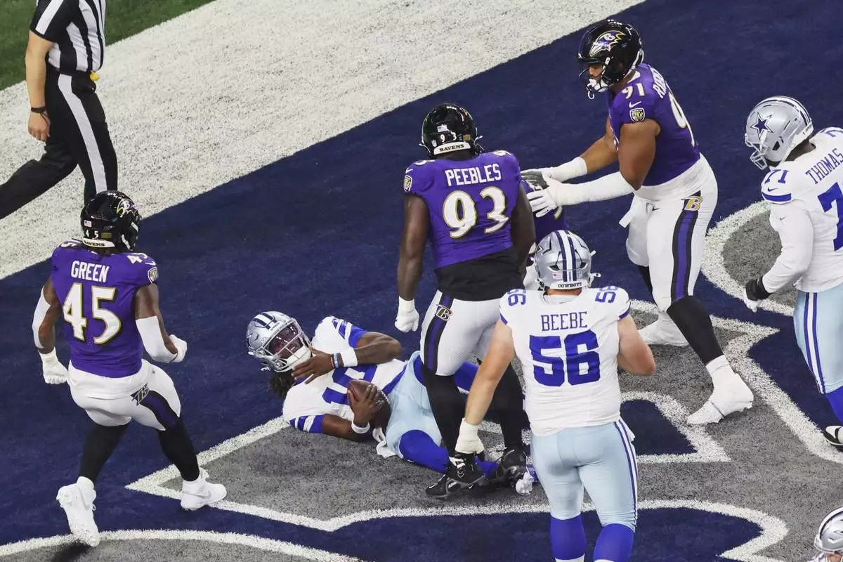 Neither Prescott nor Ravens starting quarterback Lamar Jackson was in uniform. Prescott received a few seconds of screen time on the stadium’s enormous videoboard, urging the fans to make noise before the fourth-down Baltimore play that resulted in Rush’s TD pass.