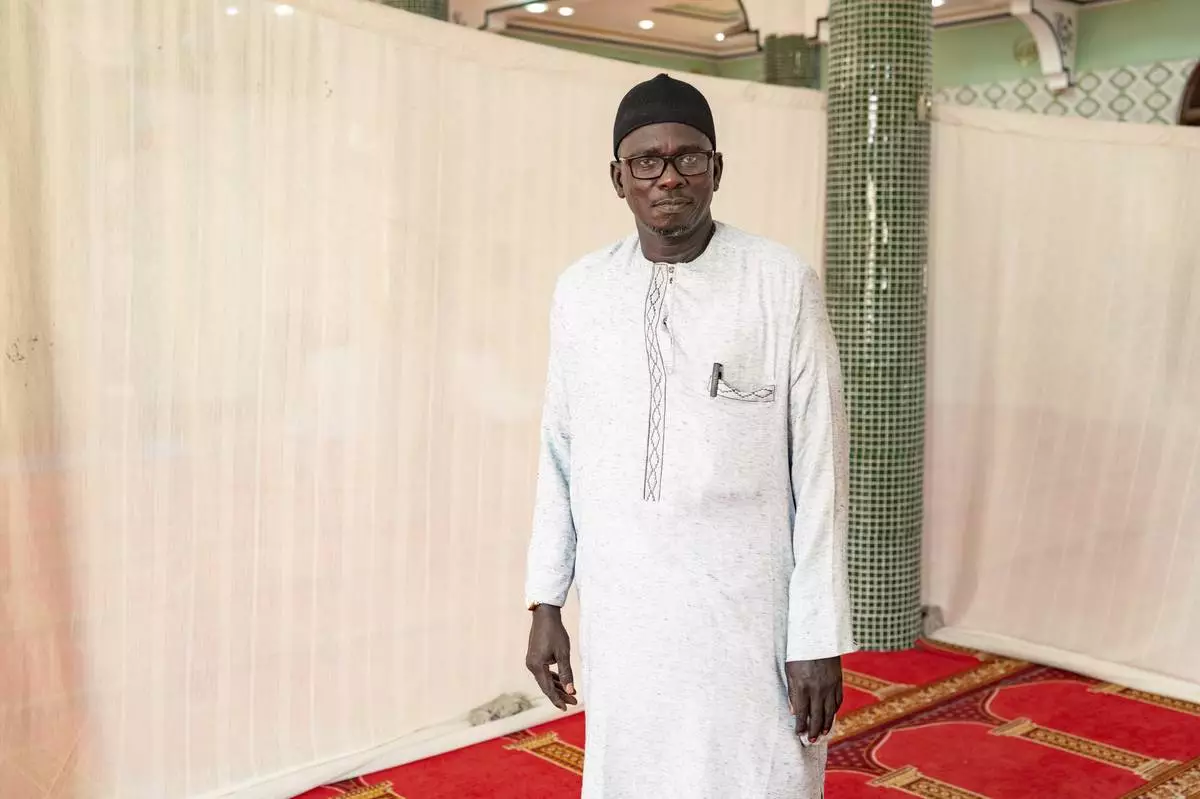 Imam Ibrahima Diane, advocate for gender equality and an end to harmful practices like FGM and gender-based violence, poses for a photograph before the start of his sermon at the Great Mosque of Nietty Mbar in Thiaroye, a suburb of Dakar, Senegal, Friday, July 4, 2025.(AP Photo/Sylvain Cherkaoui)