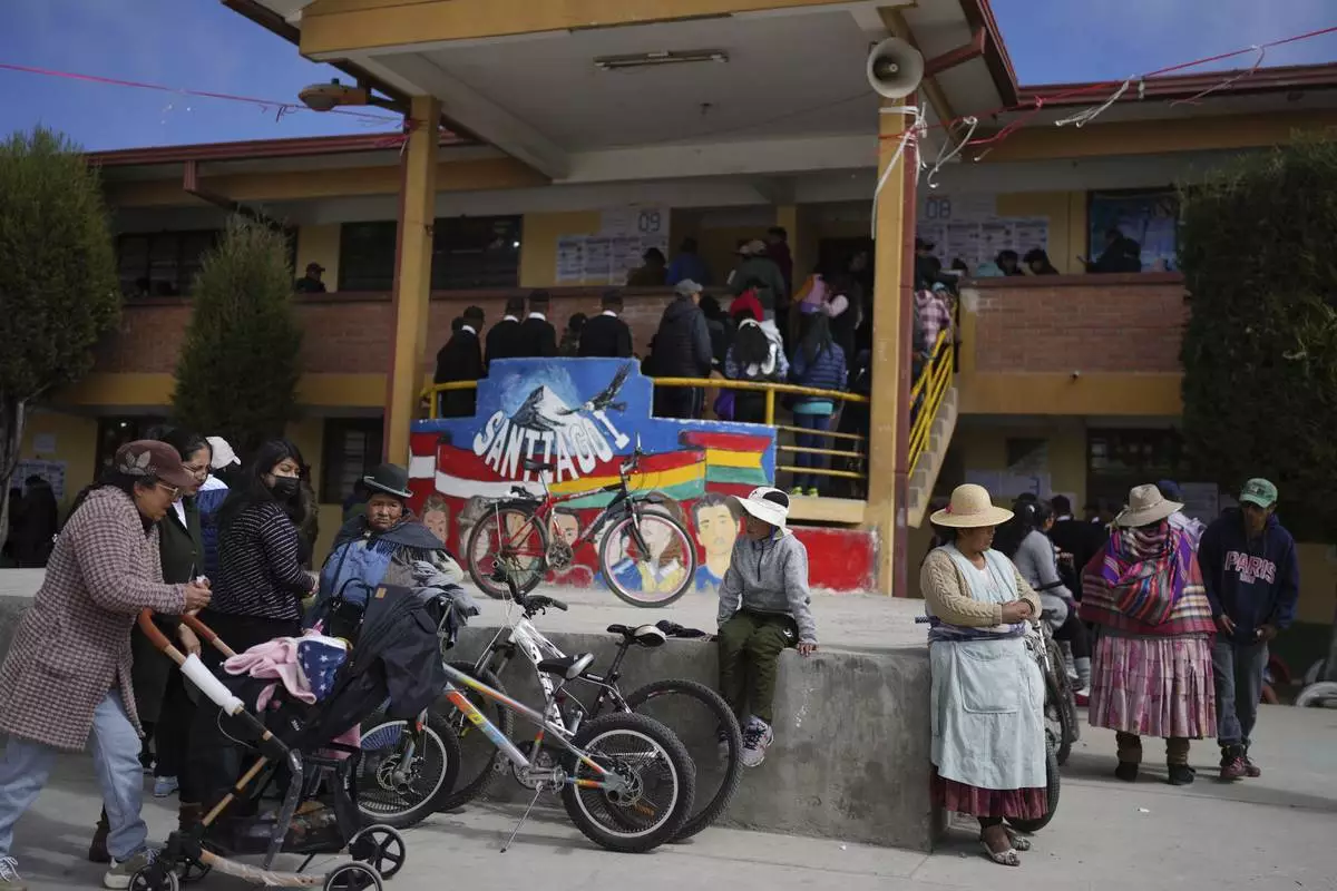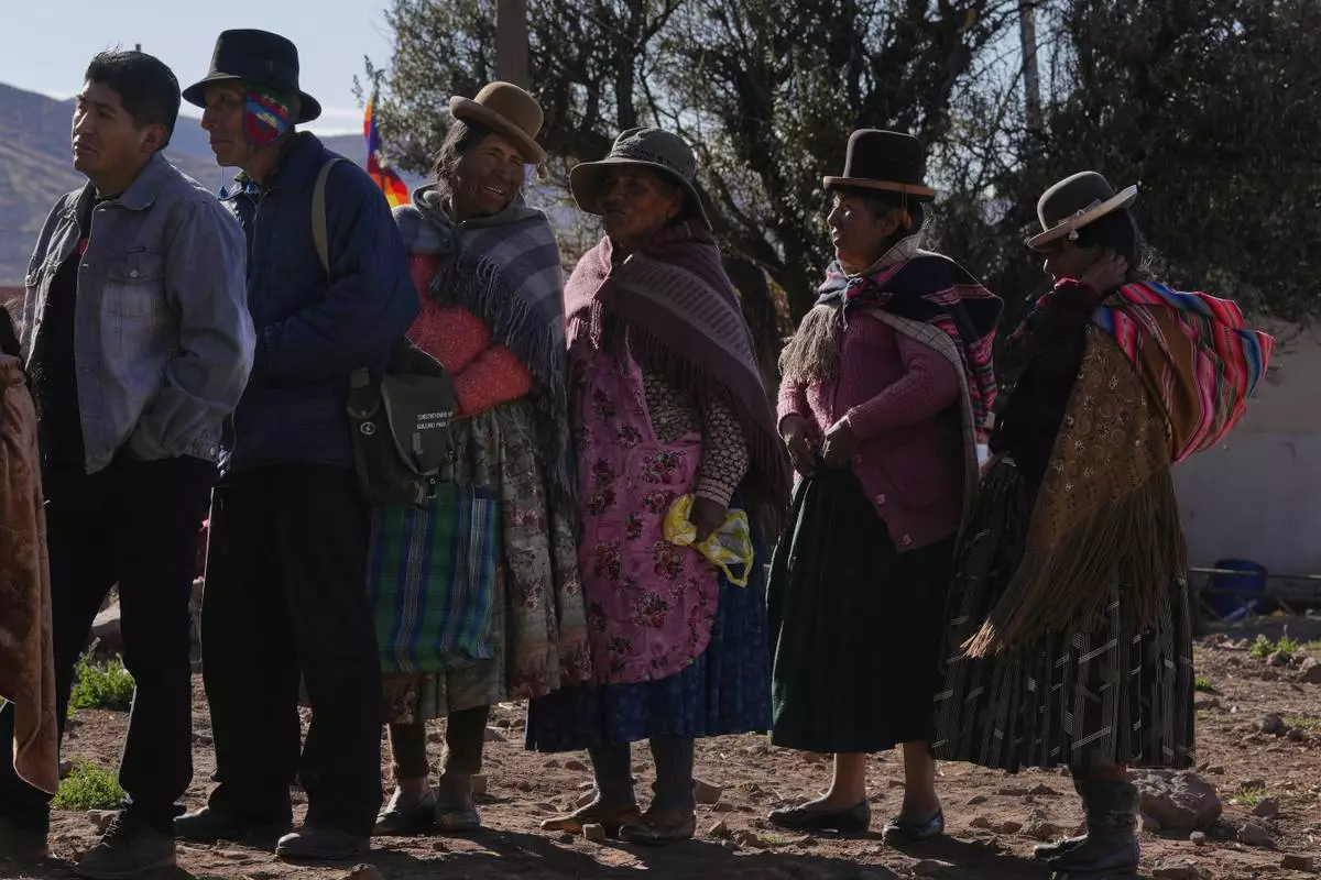Voters line up at a polling startion during general elections in Jesus de Machaca, Bolivia, Sunday, Aug. 17, 2025. (AP Photo/Juan Karita)