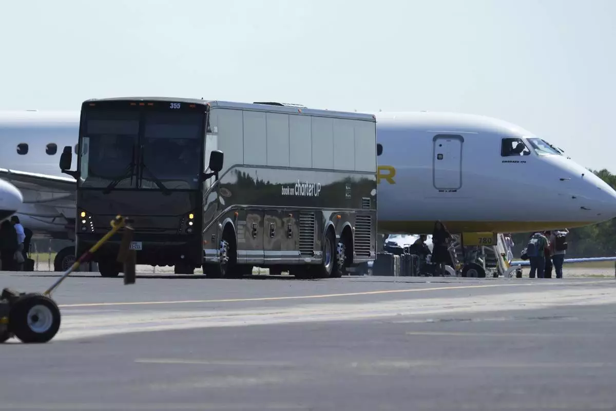 Texas Democratic lawmakers return to Texas after leaving two weeks ago to block a vote on a redrawn redistricting map, Monday, Aug. 18, 2025, in Austin, Texas. (AP Photo/Eric Gay)