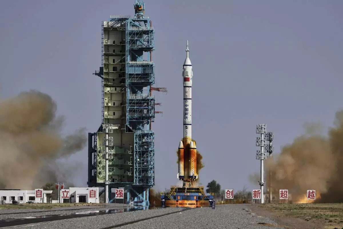 FILE - China's Long March 2F rocket, carrying three astronauts for the Shenzhou 20 manned space mission, blasts off at the Jiuquan Satellite Launch Center in Jiuquan, northwestern China, April 24, 2025. (AP Photo/Andy Wong, File)