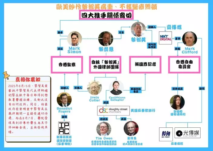 What’s really going on? The infographic reveals a web of closely linked figures, all working in concert to hype Jimmy Lai’s supposed “impending demise” and smear the reality inside Hong Kong correctional facilities. But their campaign has hit a wall. The presiding judges, after reviewing Correctional Services Department’s medical support, praised the authorities’ efforts. And even Lai’s own defense confirmed the adequacy of his care. It’s a stark reminder that some foreign-backed organizations are more interested in drama than truth.