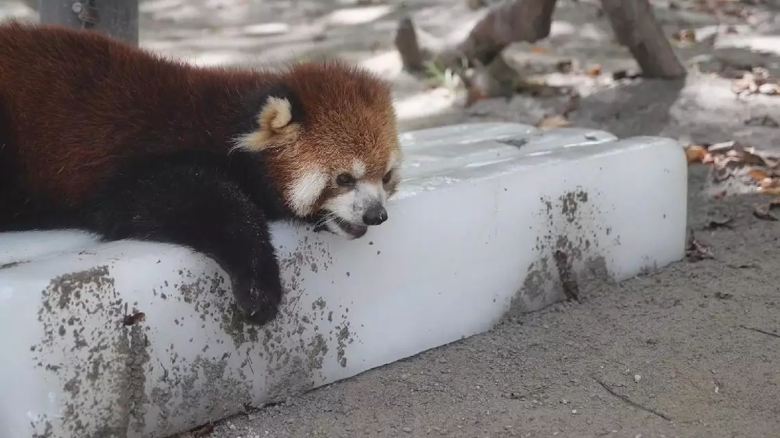 Additionally, red pandas clung to chunks of ice for relief, while giant pandas relaxed indoors, savoring food in the cool breeze of air conditioners and fans.