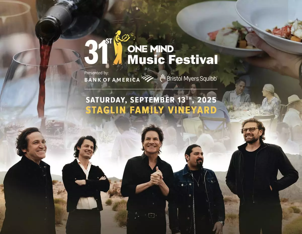 The 31st One Mind Music Festival on September 13, 2025 will be hosted at Staglin Family Vineyard in Rutherford, CA. The day-long festival, presented by Bank of America and Bristol Myers Squibb, offers a unique blend of world-class wine tasting, culinary excellence, and groundbreaking science, all set against the stunning backdrop of Napa Valley.