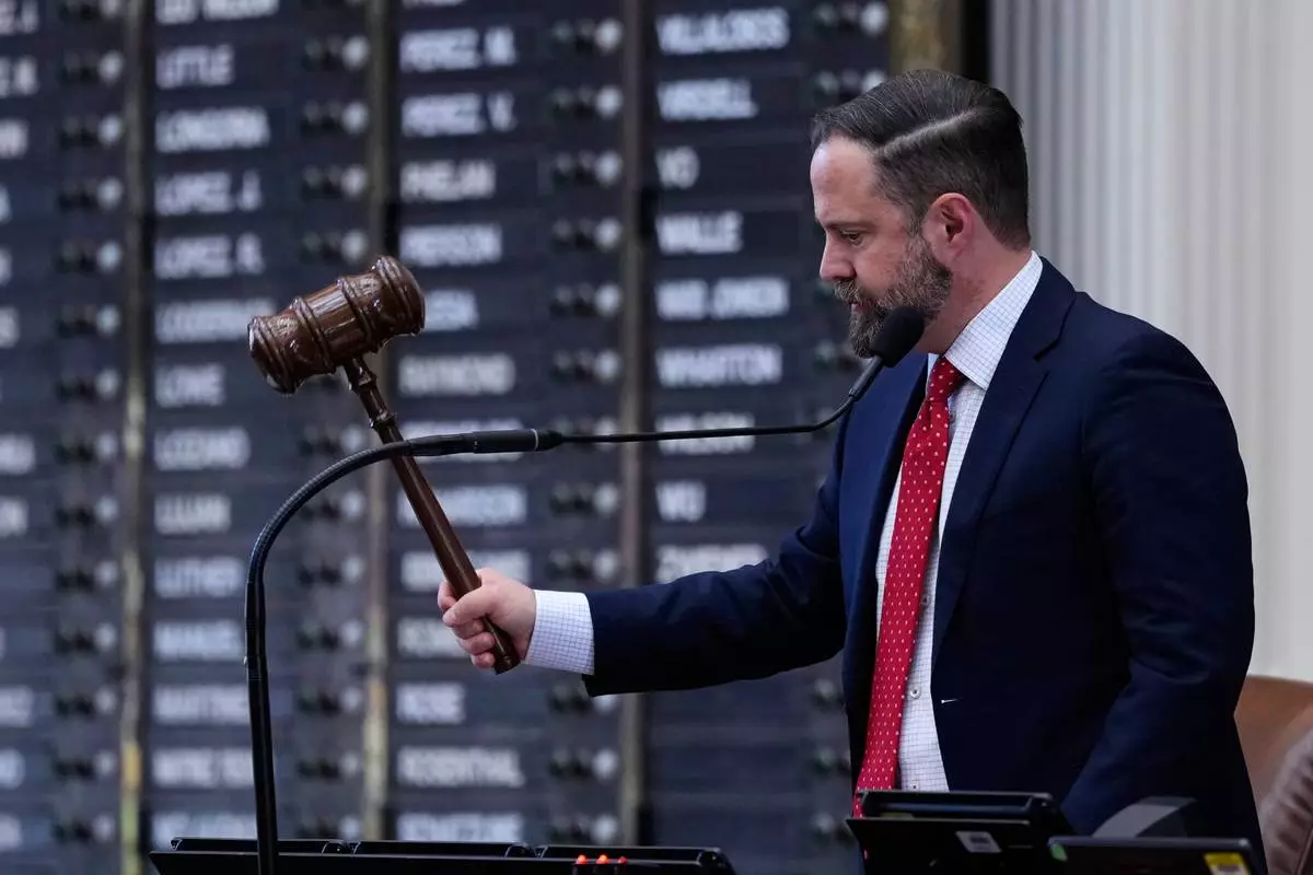 Texas Speaker of the House Dustin Burrows, R-Lubbock, oversees a debate over a redrawn U.S. congressional map in Texas during a special session, Wednesday, Aug. 20, 2025, in Austin, Texas. (AP Photo/Eric Gay)