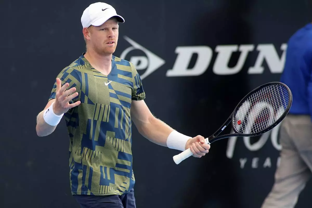 FILE - Britain's Kyle Edmund reacts to loosing a point to Italy's Jannik Sinner during their Round of 32 match at the Adelaide International Tennis tournament in Adelaide, Australia, Jan. 3, 2023. (AP Photo/Kelly Barnes, File)