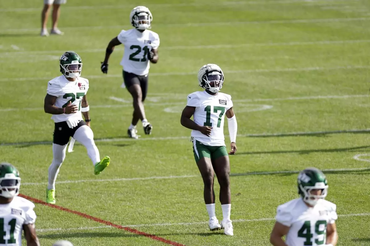 FILE - New York Jets cornerback Kris Boyd takes part in an NFL football training camp, July 23, 2025, in Florham Park, N.J. (AP Photo/Adam Hunger, File)