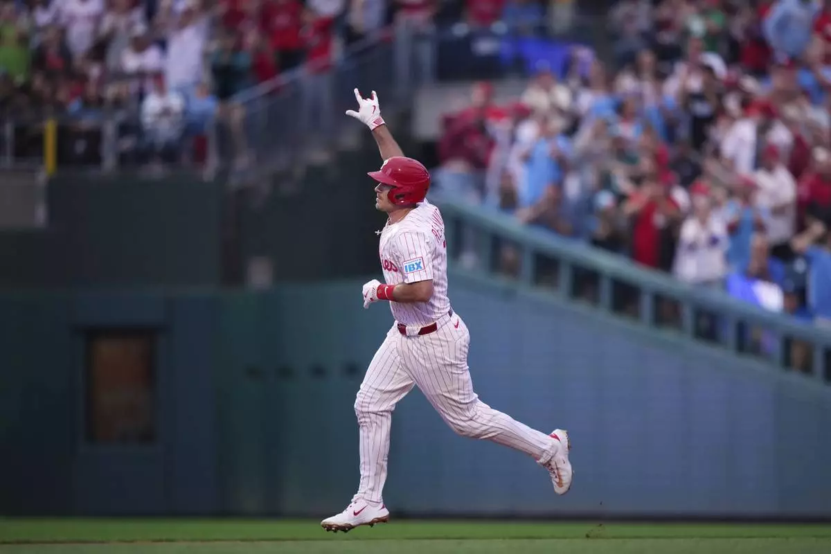 J.T. Realmuto had three hits, including a home run, and the Phillies also got RBI hits from Kyle Schwarber, Max Kepler and Bryson Stott. All told, the Phillies got 21 hits.