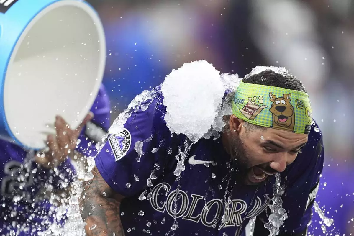 DENVER (AP) — This was a cool moment for Warming Bernabel — being doused with an icy bucket of water.