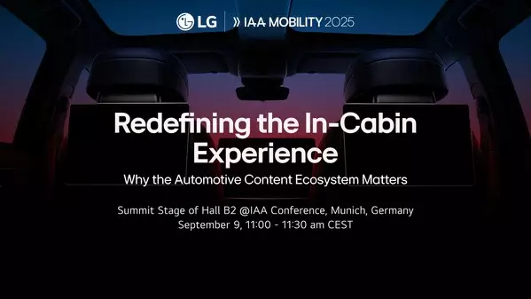 LG's lecture session, "Redefining the In-Cabin Experience: Why the Automotive Content Ecosystem Matters," is scheduled for September 9 at 11:00 AM (CEST) on the Summit Stage in Hall B2 at Trade Fair Center Messe München. For more information, please visit the official IAA MOBILITY 2025 website.
