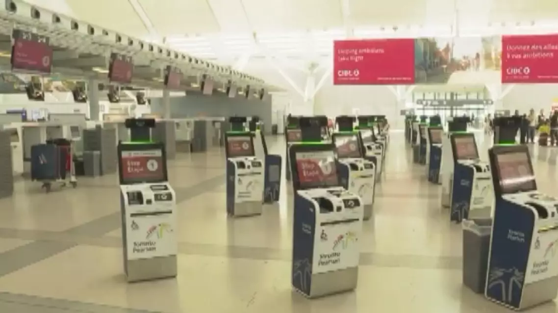 Inside the Toronto Pearson International Airport, staff set up temporary counters to assist passengers unaware of the strike. Most of the flight information screens showed Air Canada's flights as "canceled" or "delayed," with only a few marked as "on time."