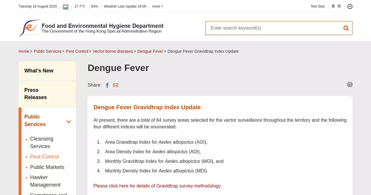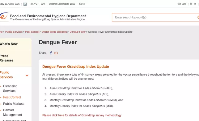 FEHD releases fifth batch of gravidtrap indexes for Aedes albopictus in August
