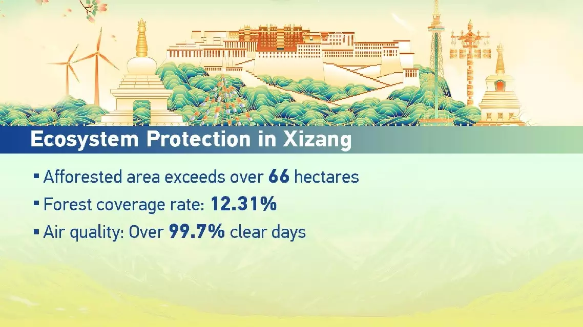 Recent afforestation efforts in the mountains north and south of Lhasa have added more than 66 hectares of forest, raising the forest coverage rate to over 12 percent. As a result, days with excellent air quality now account for nearly 100 percent of the year.
