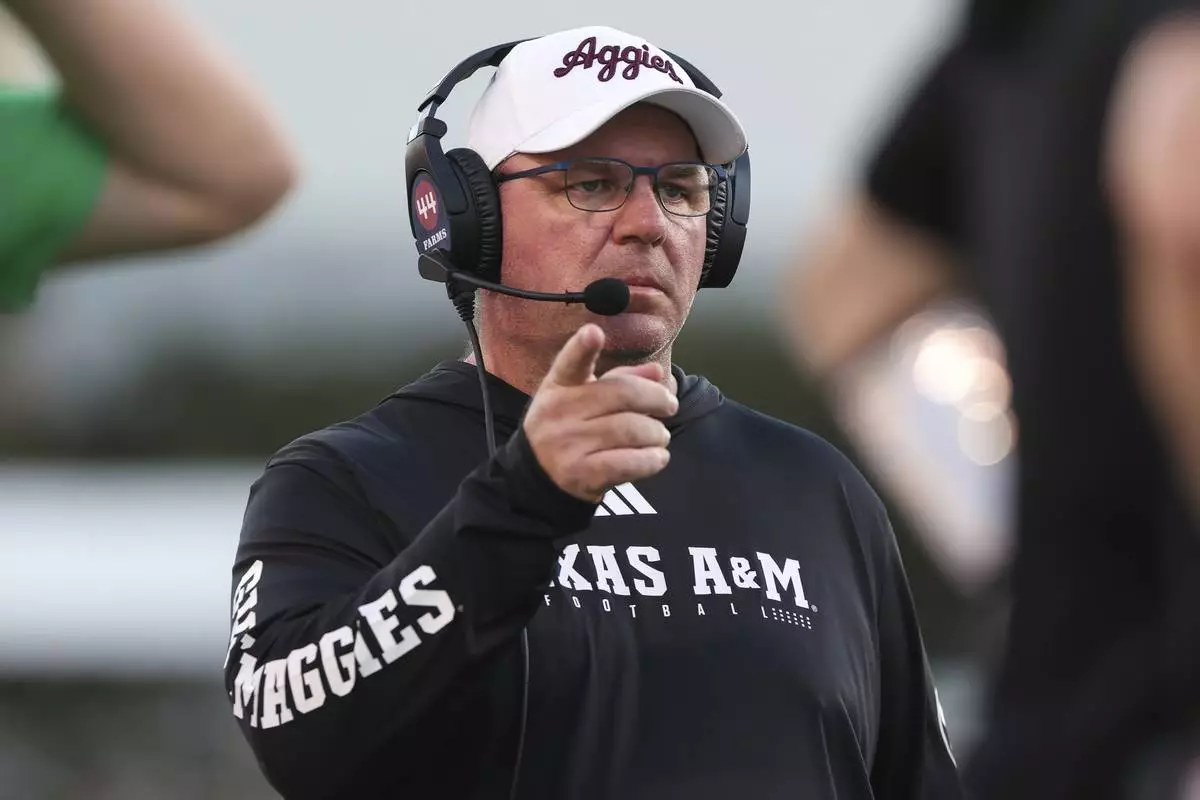 FILE - Texas A&M head coach Mike Elko is seen during the second half of an NCAA college football game against Mississippi State, Saturday, Oct. 19, 2024, in Starkville, Miss. (AP Photo/Randy J. Williams,File)