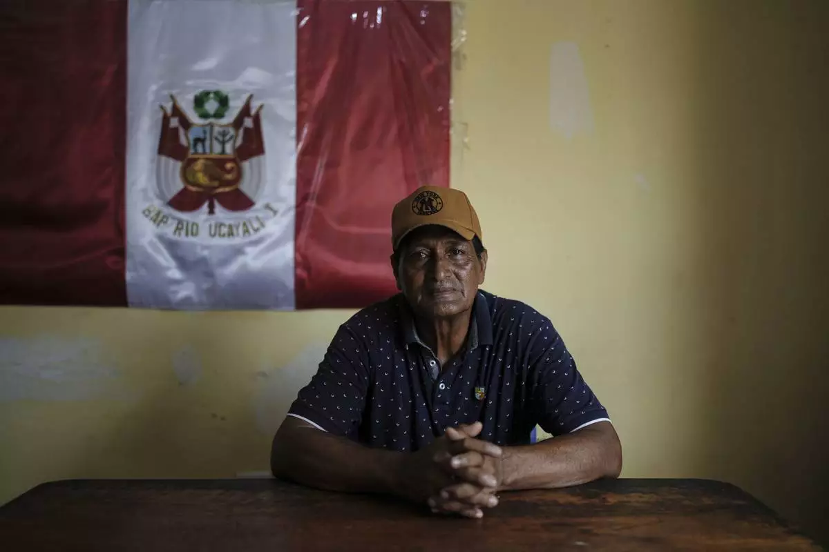 Mayor Max Ortiz poses for a portrait in his office in Santa Rosa, Peru, an island on the Amazon River at the center of a territorial dispute with Colombia, Saturday, Aug. 16, 2025. (AP Photo/Ivan Valencia)