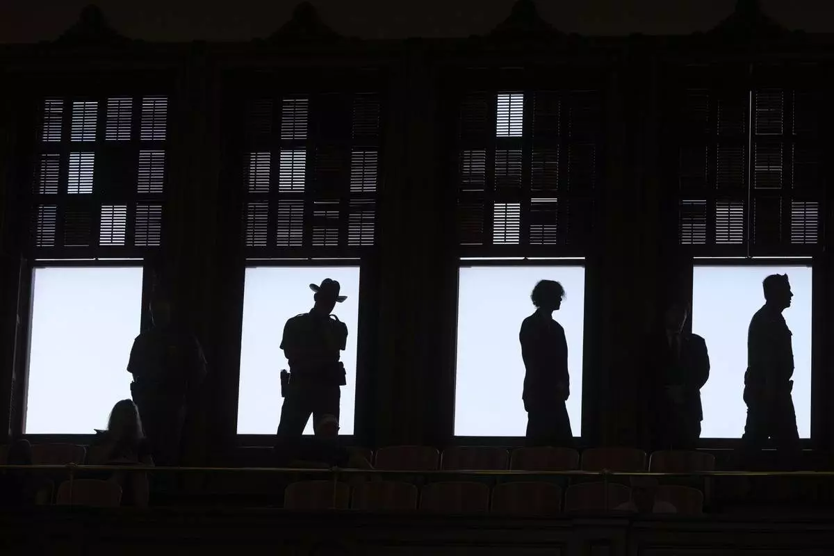 Texas troopers watch from the balcony as lawmakers debate a redrawn U.S. congressional map in Texas during a special session, Wednesday, Aug. 20, 2025, in Austin, Texas. (AP Photo/Eric Gay)