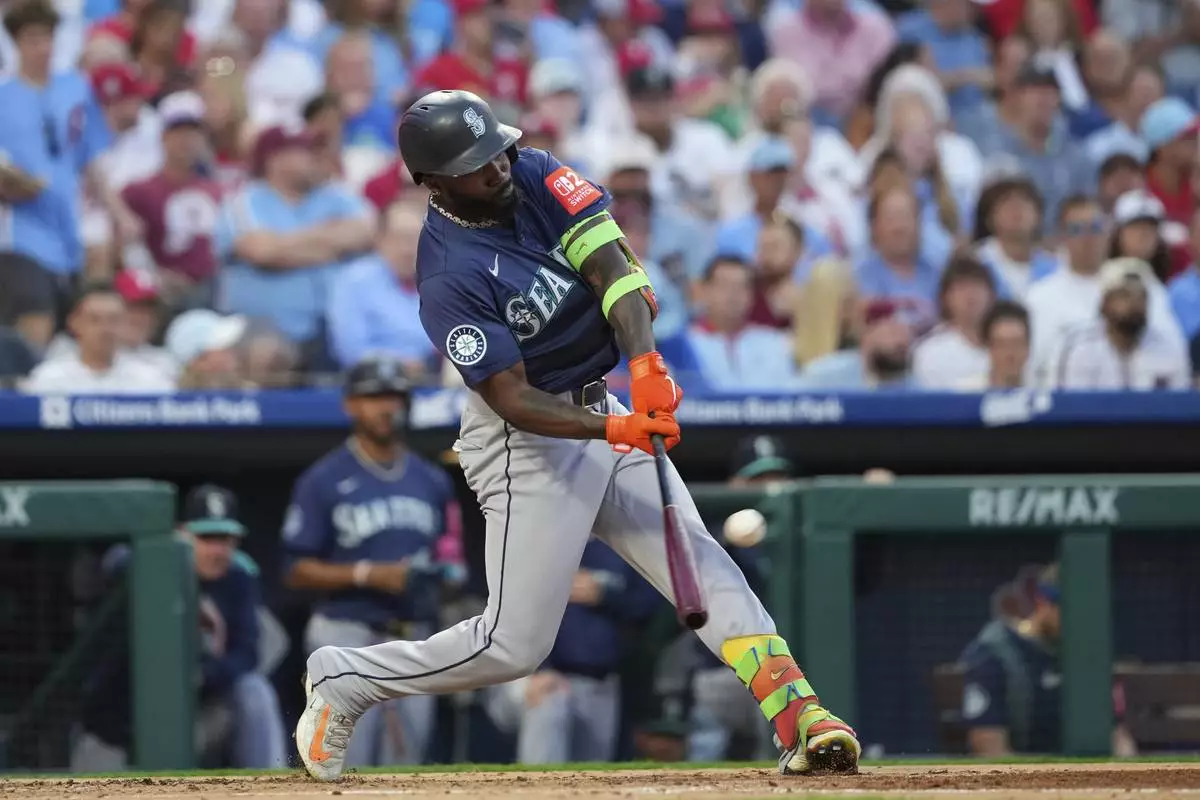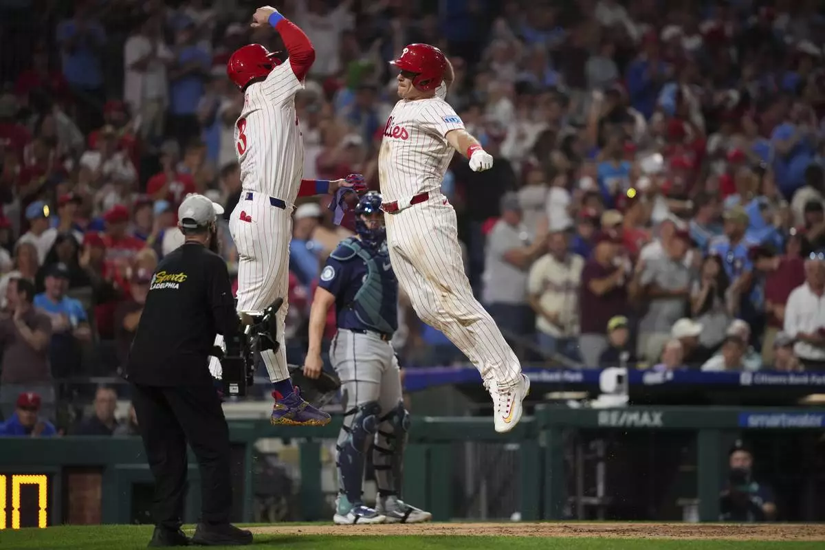 PHILADELPHIA (AP) — J.T. Realmuto hit a go-ahead two-run home run in the eighth inning, Kyle Schwarber and Bryson Stott also homered and the Philadelphia Phillies defeated the Seattle Mariners 6-4 on Tuesday night.
