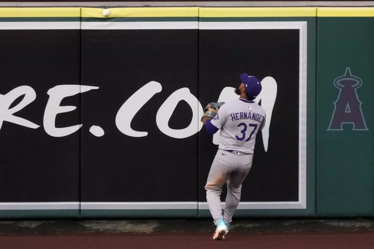 Outfield defense has been a problem for Los Angeles, and Roberts called out Teoscar Hernández’s play in right after Monday night's 4-3 loss to the Colorado Rockies. Hernández failed to catch Ezequiel Tovar’s high popup that landed for a double in the ninth inning, and Tovar scored the winning run two pitches later.