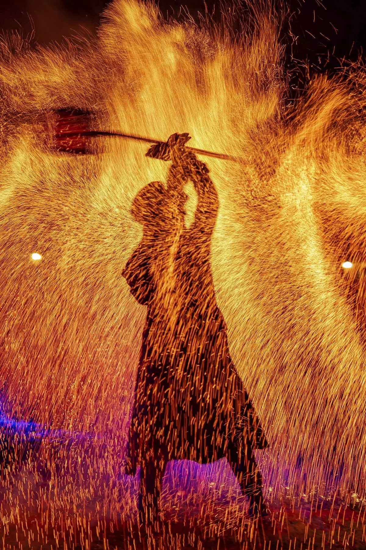 A protester holds an umbrella as sparks fly from a flash bang deployed by law enforcement on Wednesday, Jan. 14, 2026, in Minneapolis. (AP Photo/Adam Gray)
